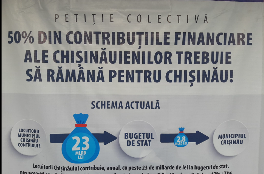 На кишиневских остановках и в общественном транспорте начала появляться баннерная реклама запущенной Ионом Чебаном петиции. Вот её основной текст на румынском языке: «50% din contribuțiile chișinăuienilor trebuie să rămână pentru Chișinău». То есть, мэр, обращаясь к жителям города, говорит (а эта фраза на плакате – цитата его сообщения в одном из лайвов), что 50% процентов финансовых взносов кишиневцев должны оставаться в Кишиневе».