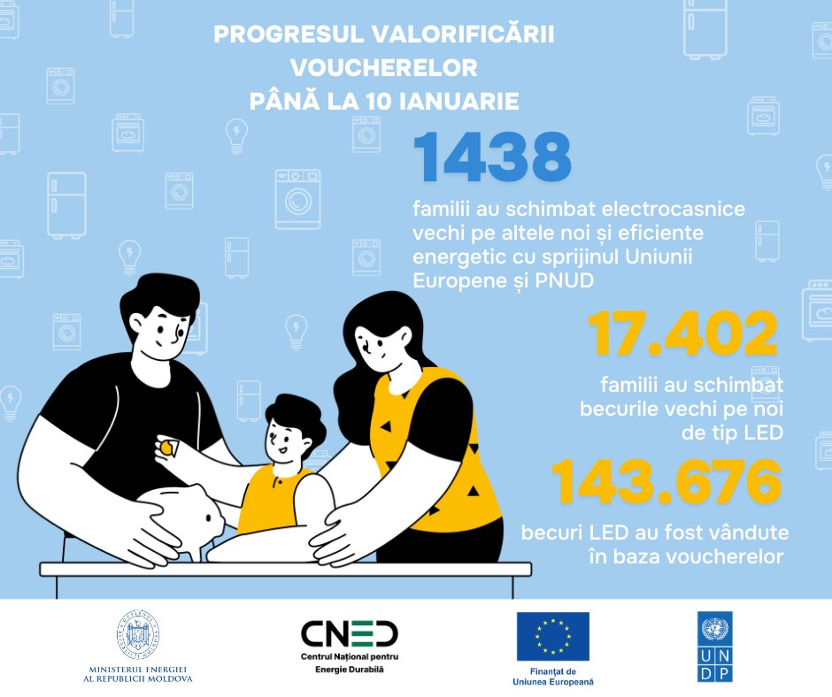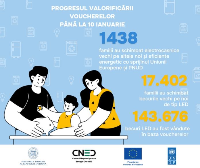 К 10 января 18 840 жителей Молдовы обменяли эковаучеры, выданные в рамках программы «Rabla pentru electrocasnice», на 1438 крупных электроприбора и 143 676 светодиодных ламп.