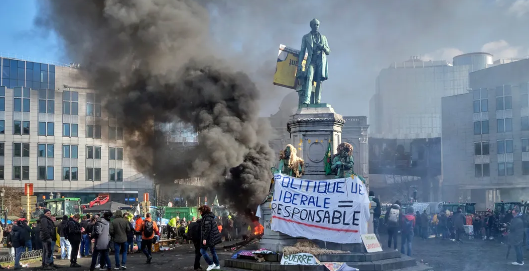 Саммит Евросоюза по Украине 1 февраля проходил в сопровождении гудков тысячи тракторов. Их водители приехали из разных районов Бельгии в Брюссель, чтобы выразить протест против чрезмерной, по их мнению, законодательной зарегулированности сельского хозяйства и дешевого импорта. Они заблокировали европейский квартал города, подожгли костры на Люксембургской площади и свалили одну из установленных на ней скульптур (она была частью памятника 1872 года основателю бельгийской металлургии Джону Коккерилю).