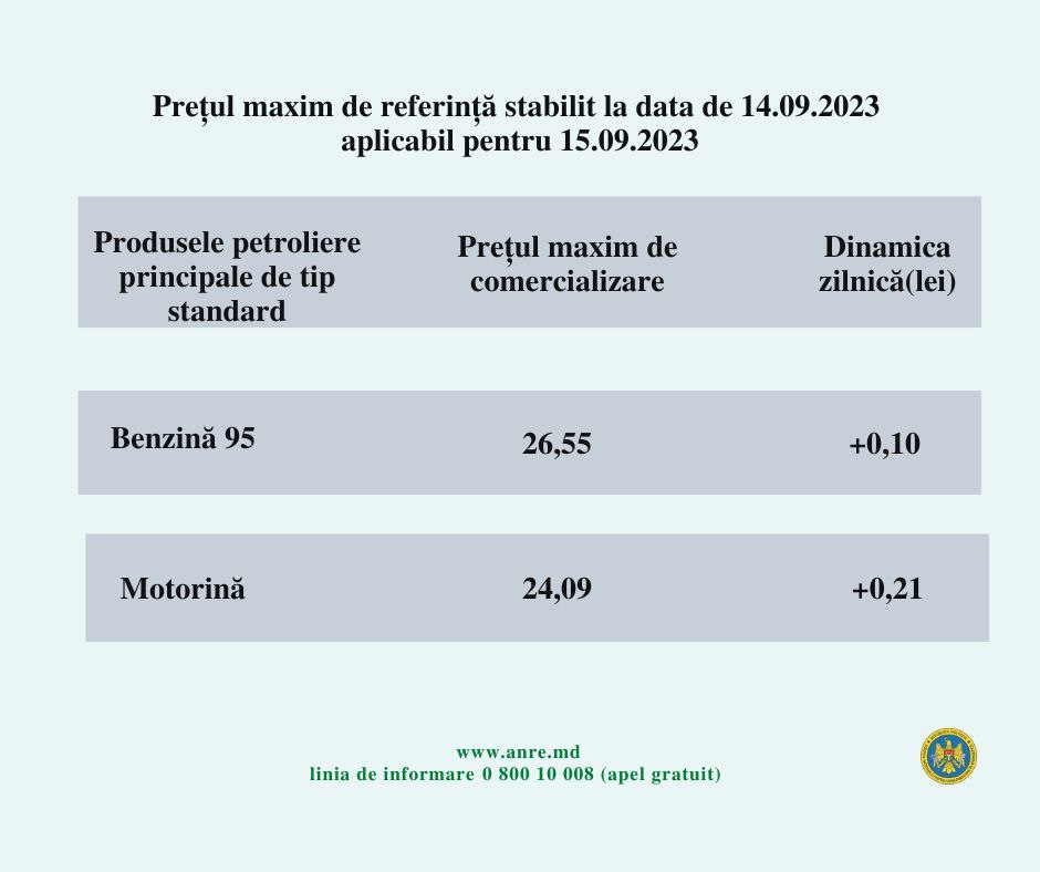 Так, в пятницу безнин будет продаваться по 26,55 леев, что на 10 банов больше прежней цены.