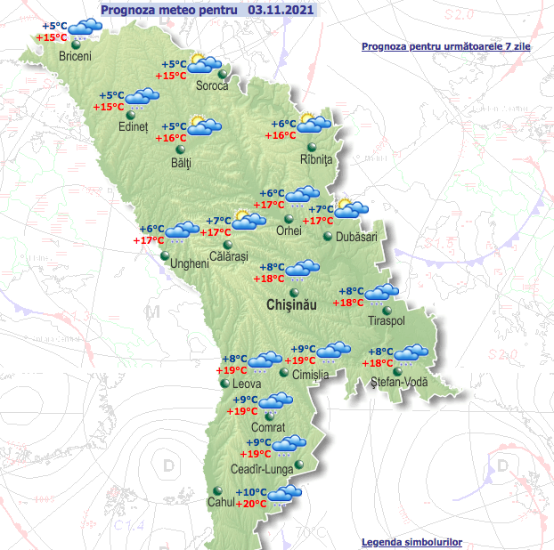 Согласно прогнозу синоптиков, 3 ноября в Молдове пройдут слабые дожди. Ветер юго-западный, слабый до умеренного.
